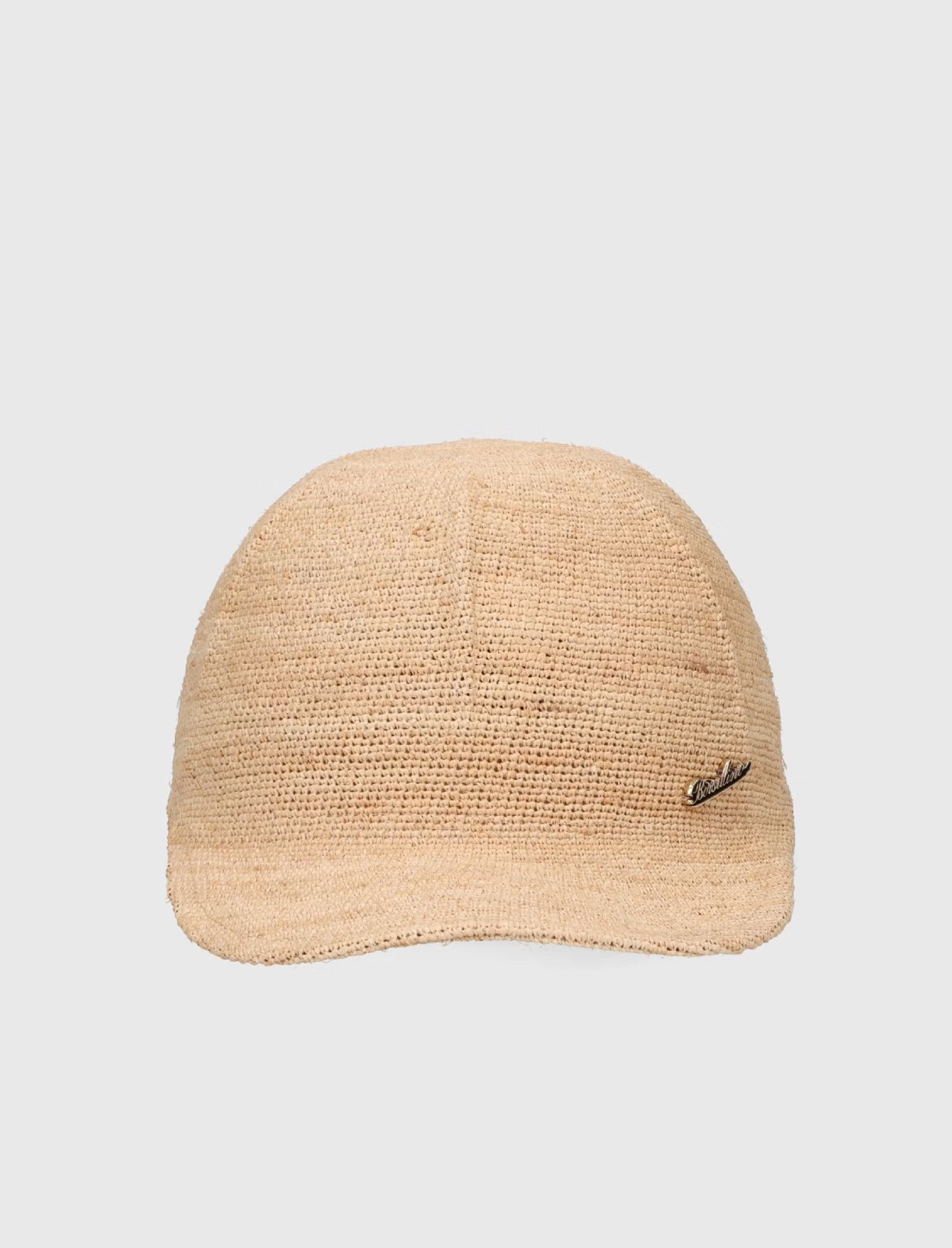 The Timothée hat is crafted from crocheted raffia, handcrafted to create a naturally porous, lightweight, and breathable texture. The raffia gives the hat a unique, irregular color, with striking gradient effects of light and dark tones that give each piece a unique, artisanal appeal. The model features a brim of approximately 7 cm. The design is embellished with a galvanized metal logo plaque. The passage of time and exposure to sunlight can alter the color nuances of dyed garments, giving the hat an authentic, natural look.