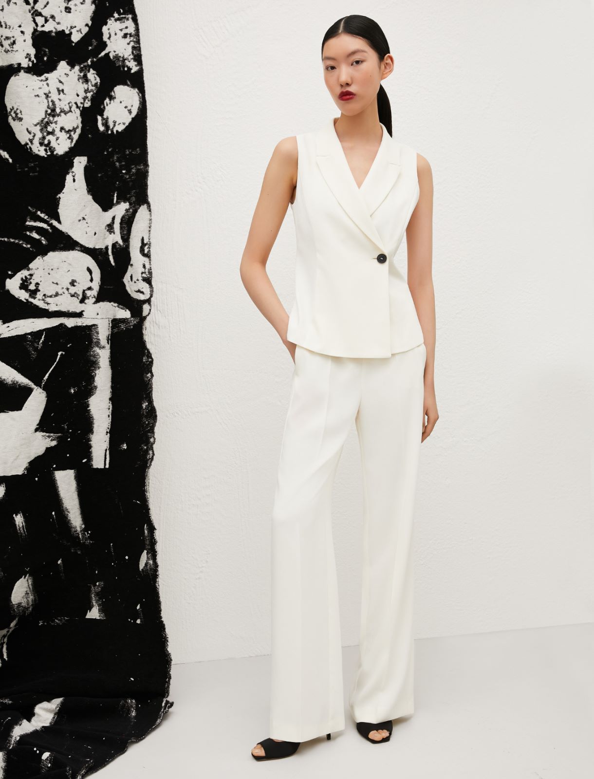 High at the waist to slim the silhouette, the straight trousers are the perfect mix between tailoring and metropolitan flair. The garment is part of the Marella ART.365 seasonless capsule.