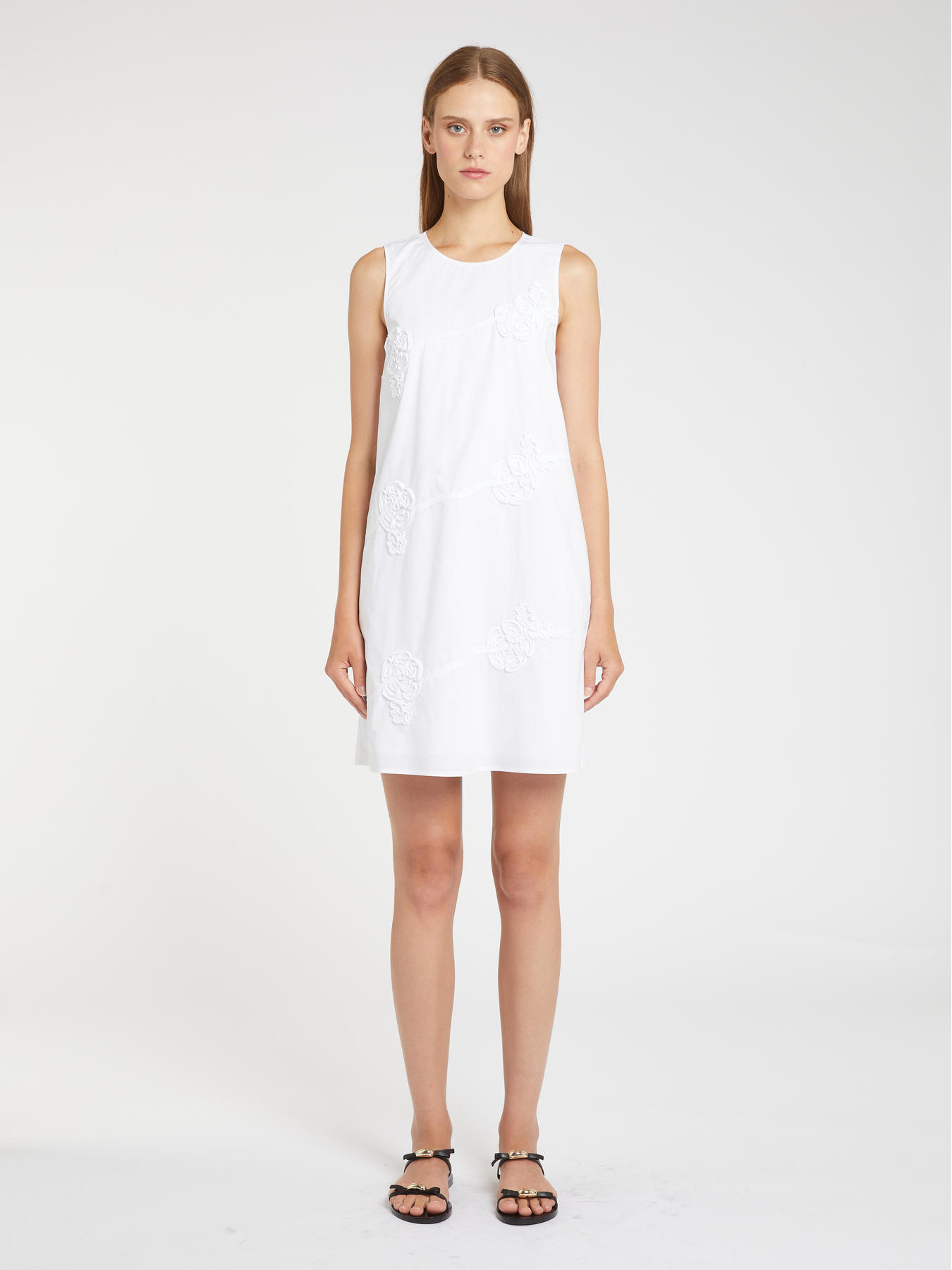 Embroidered cotton poplin dress. Flared fit. Round neckline with keyhole and back button. Sleeveless. Lined.