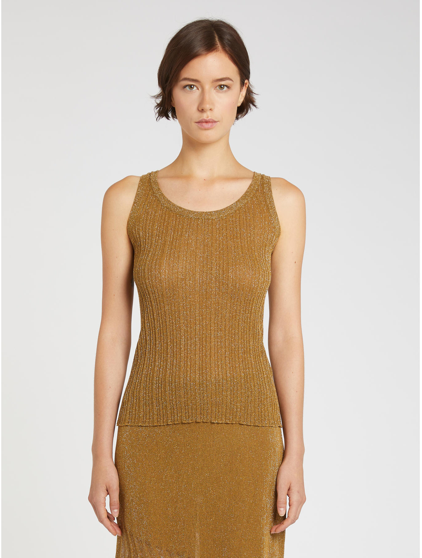 Viscose blend knit tank top with lurex. Fitted fit. Round neckline. Regular rib knit. Ribbed details on the neckline and armholes.