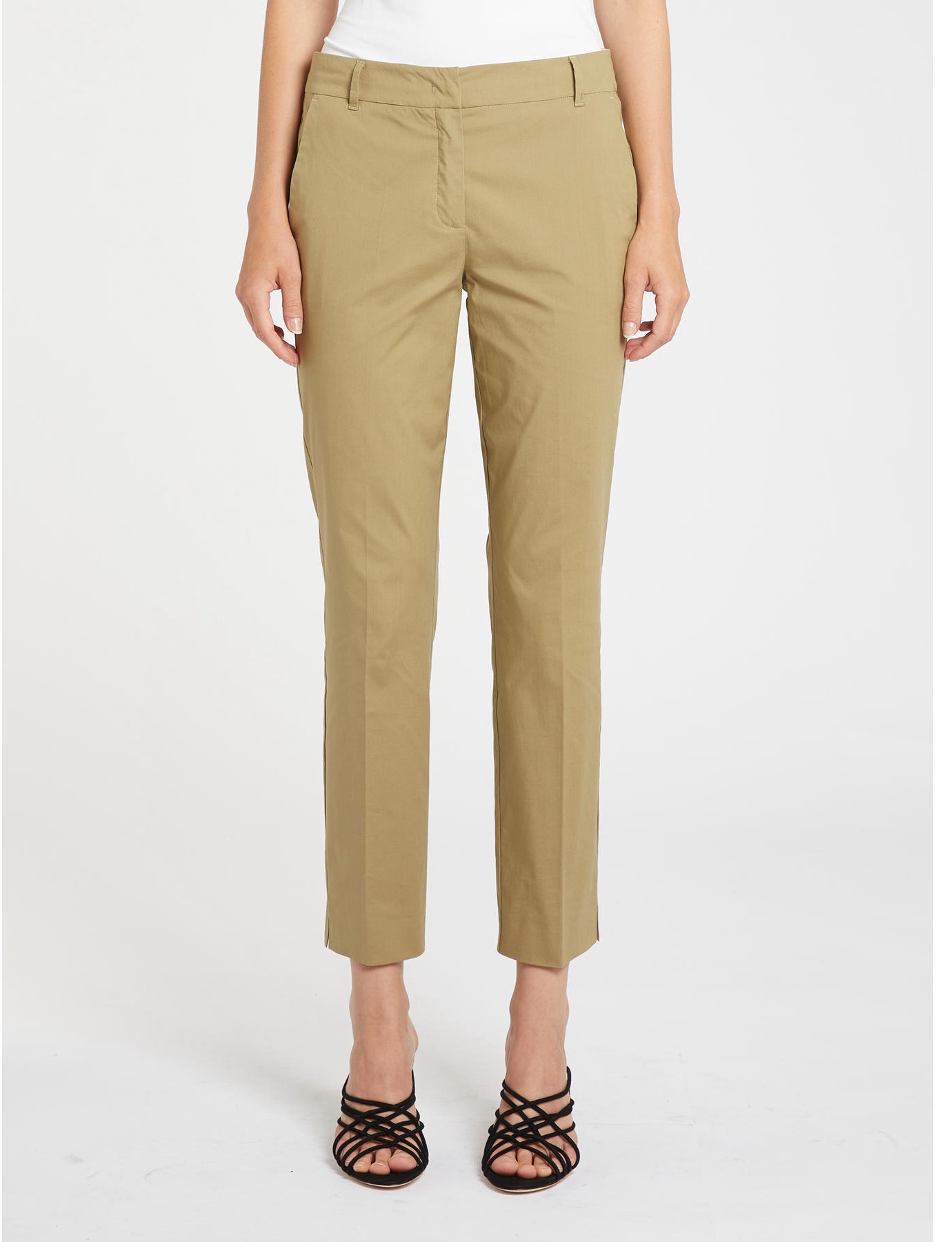 With a button fly and a straight leg, these trousers are the season's true all-rounders. Made from stretch poplin, they'll follow your every move. Stretch cotton poplin trousers. Regular fit. Hook-and-eye and zip closure. Side slant pockets and rear welt pockets. Ironed crease on front and back.