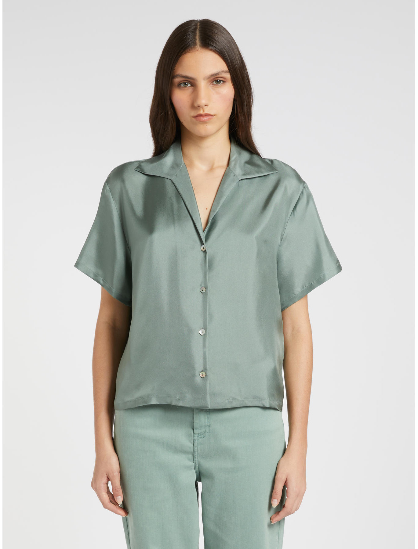 Silk twill shirt. Straight fit. Wide shirt collar with dropped shoulders. Exposed button placket. Back pleat. Monochrome Marella.