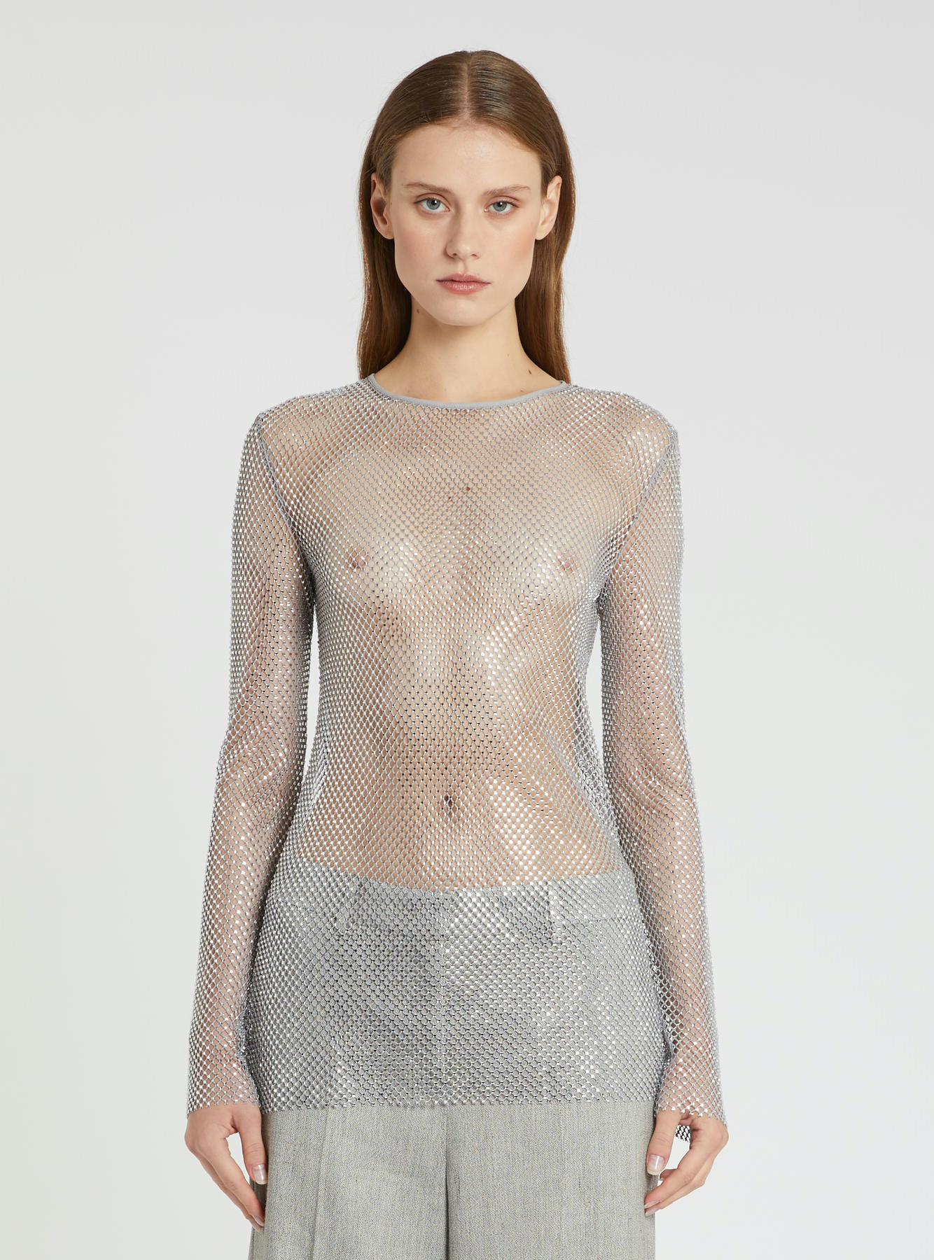 Rhinestone mesh T-shirt. Regular fit. Crew neck. Long sleeves.