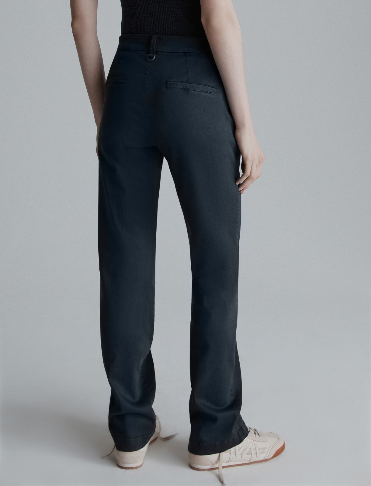 Bull stretch trousers • Wide leg fit • Closure with man-shaped hook and hidden zip • Custom metal detail on the back loop • Ironed crease on front and back • Side French pockets, rear welt pockets