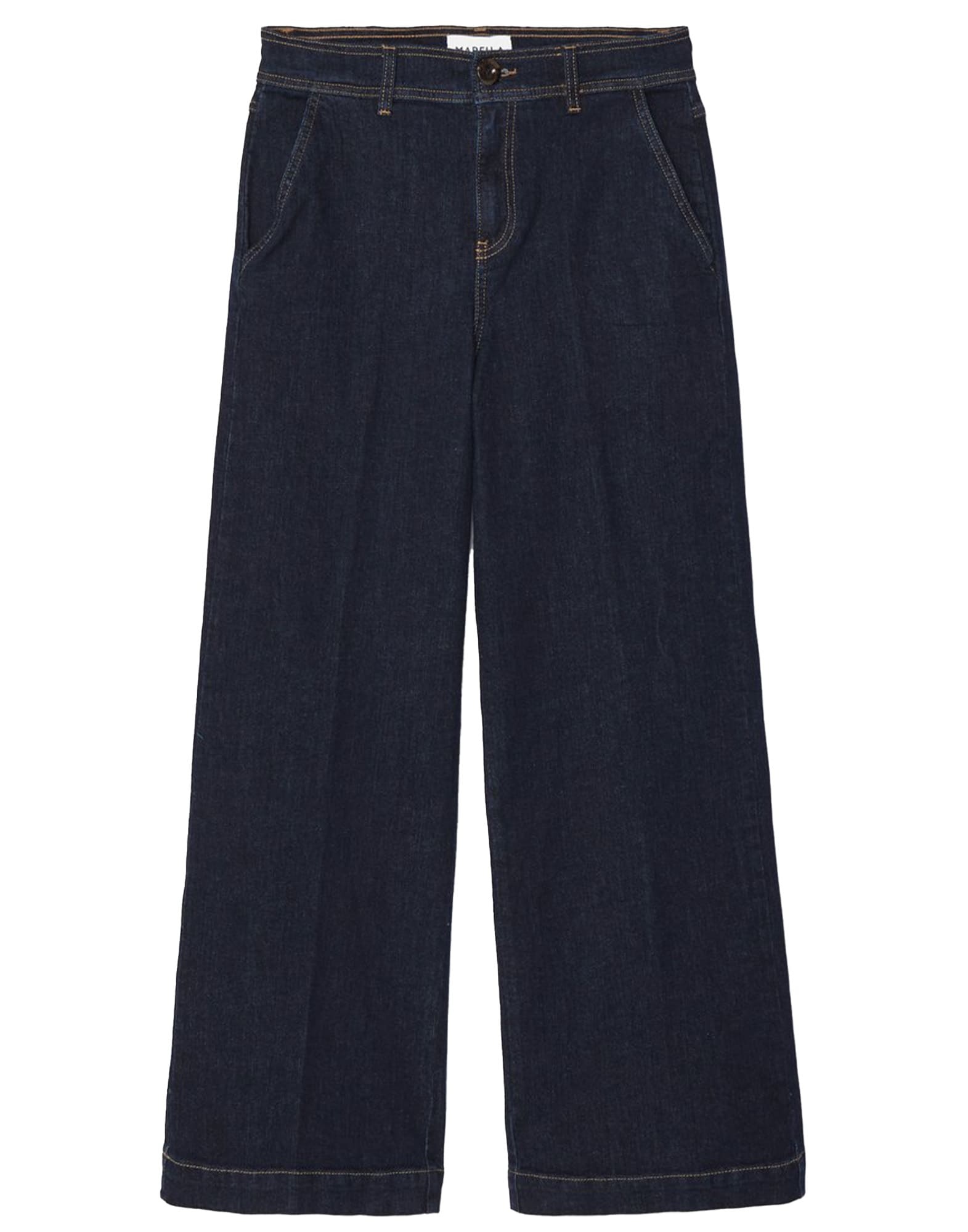 Urban mood, with a refined note: new wide leg denim with low waist, with the classic five-pocket construction. A must-have in the metropolitan wardrobe, perfect for any occasion. Pure cotton denim jeans created in collaboration with Candiani Denim. Wide leg fit with low waist. Closure with personalized tack button. 5-pocket construction. Back label in real leather with logo and stitching on the back pockets