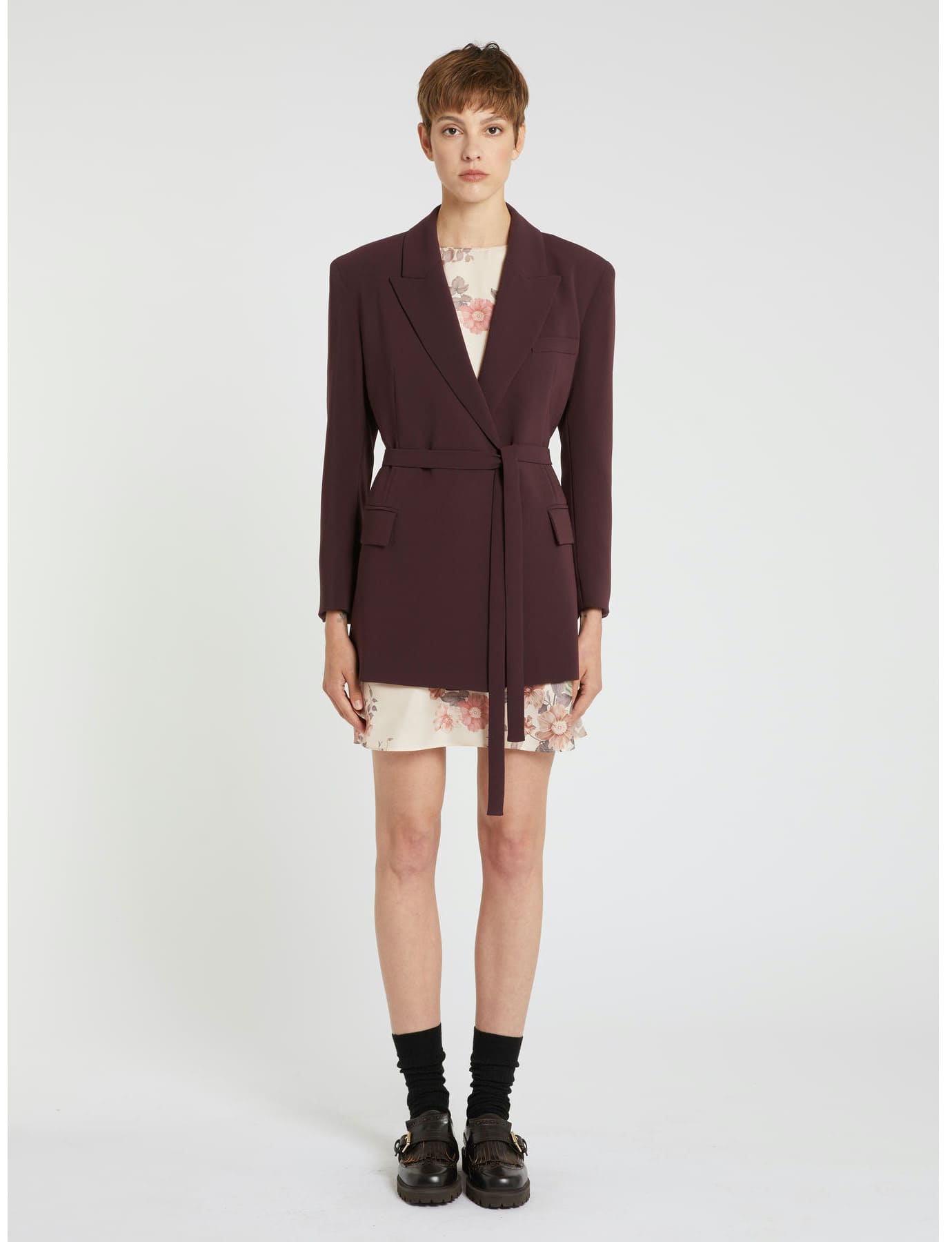 Technical cady jacket with internal lining. Regular fit. Lapel collar. Double-breasted, buttonless belt. Side flap pockets with welt.