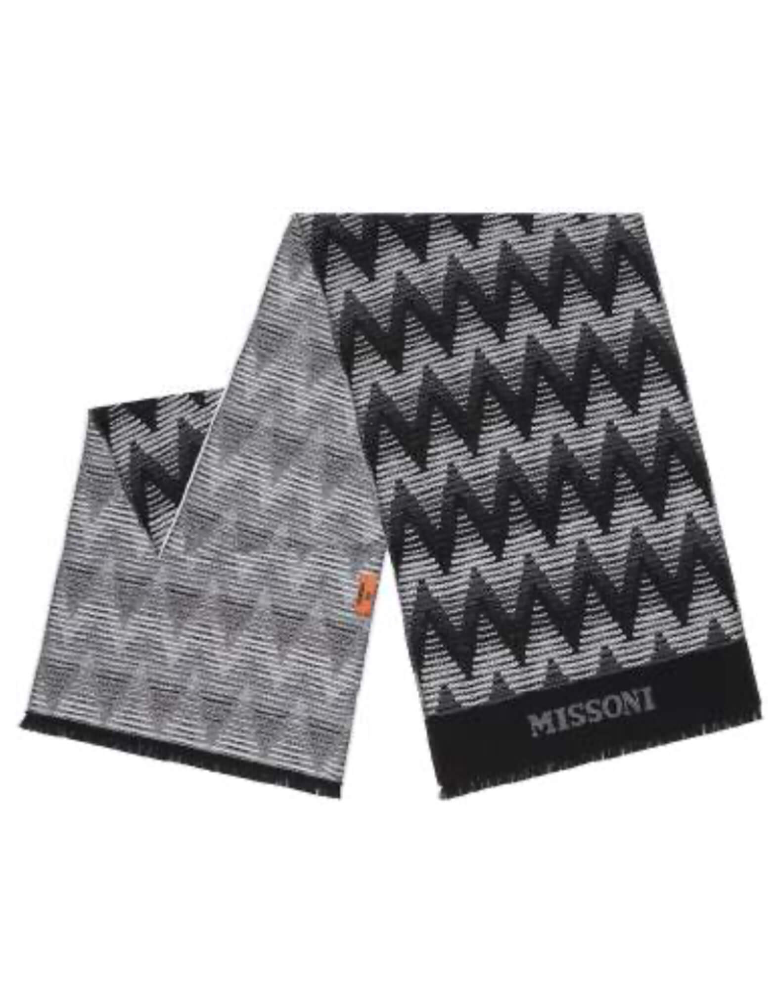 Knitted wool scarf with zigzag weave from Missoni characterized by multicolored wool, characteristic woven design, patterned workmanship, fringed edge and wrap-around style. The item received may differ slightly from the item photographed. This is due to the artisanal nature with which all Missoni products are made.