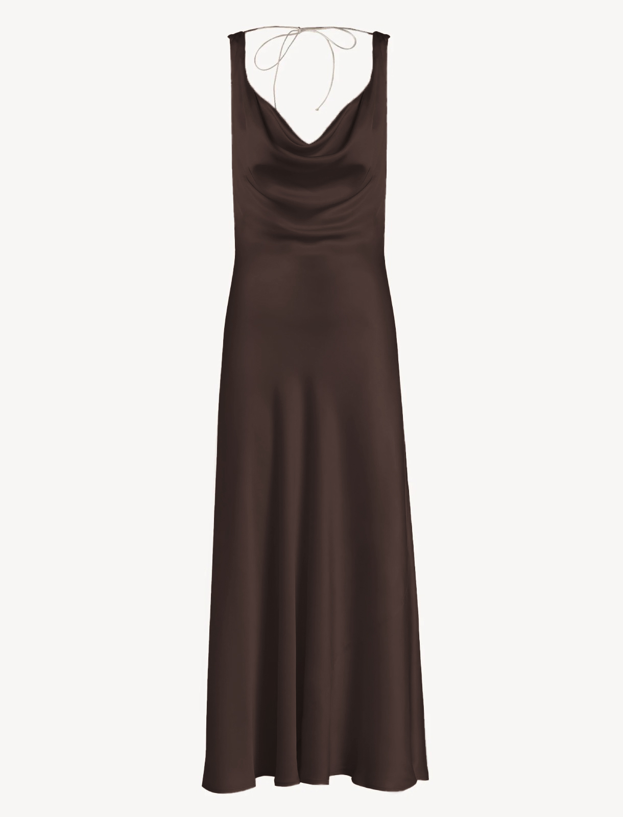 Satin midi dress with a draped halterneck. Fitted waist, wrap fit. The halterneck accentuates the shoulders and décolleté with a sophisticated touch, while the fitted waist sculpts the figure and slims the silhouette. Perfect for special occasions, party looks, ceremonies, and evening events.