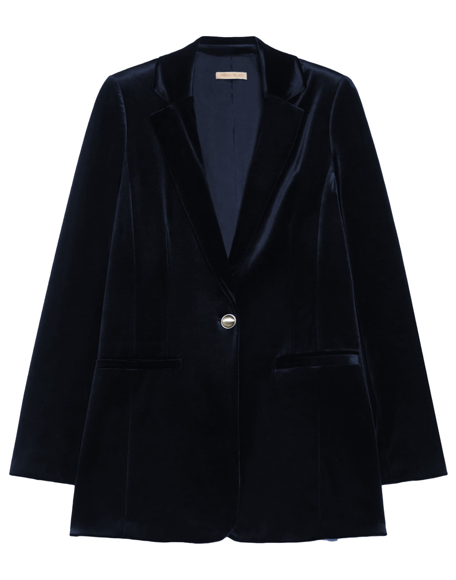 Smooth stretch velvet jersey blazer. Single-breasted slim fit. Metal button