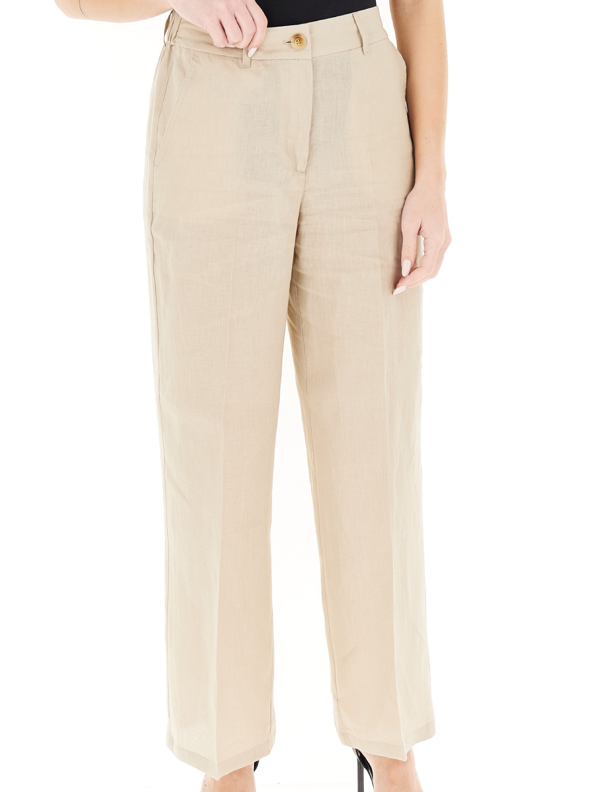 A must-have in your summer wardrobe: these loose-fitting pure linen trousers. Comfortable and ultra-fresh, they're incredibly stylish: endlessly mix and match. Pure linen. Straight, loose-fitting leg. Regular waist with internal elastic at the back and belt loops. Slant pockets at the front and patch pockets at the back. Pressed crease. Concealed zip and button closure. Matching shirt in the collection. Regular fit.