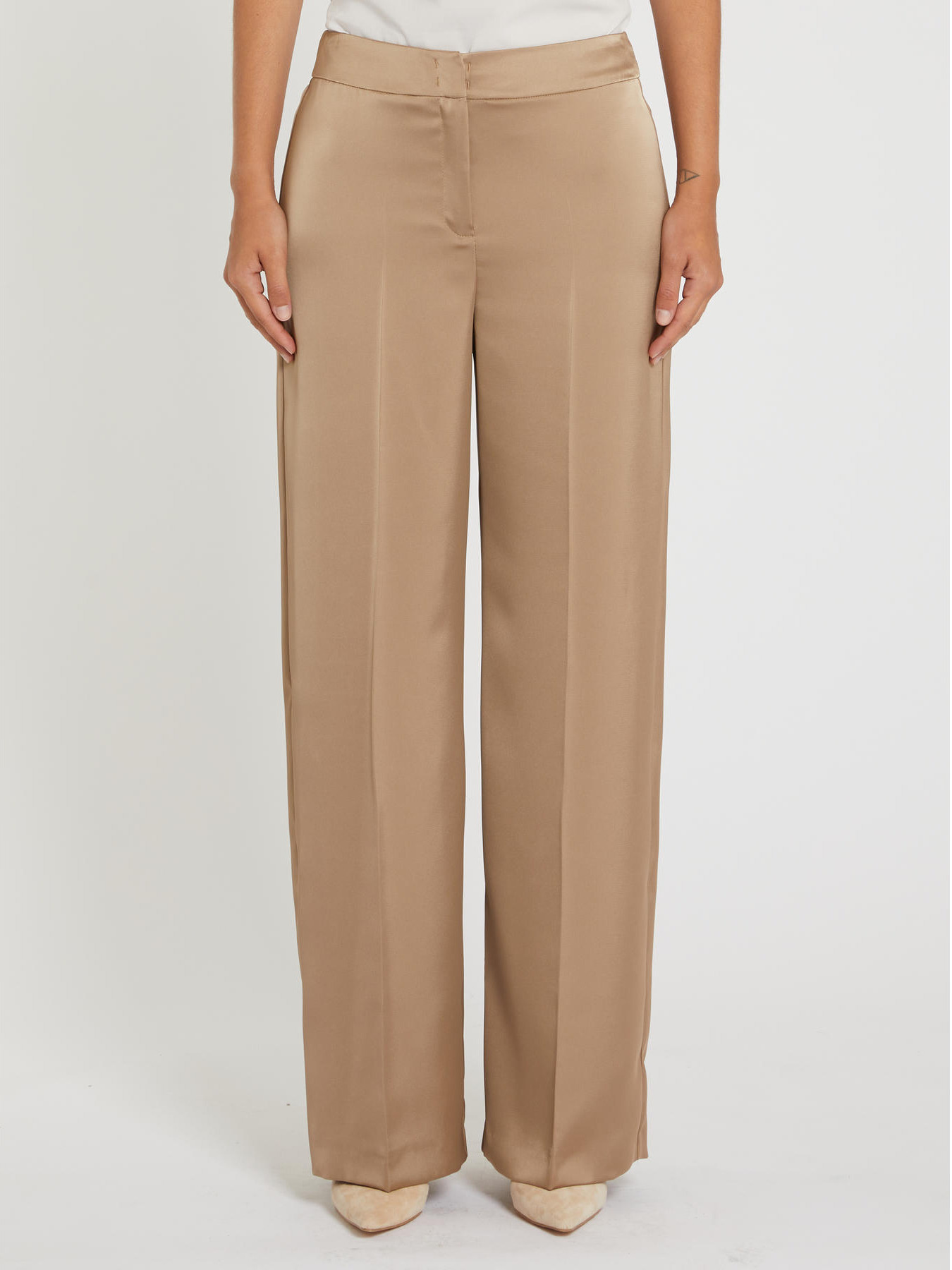 Double-satin. Straight leg. Regular waist. Pressed crease. Concealed hook and zip closure. Matching blazer, top, and blouse in the collection. Loose fit.