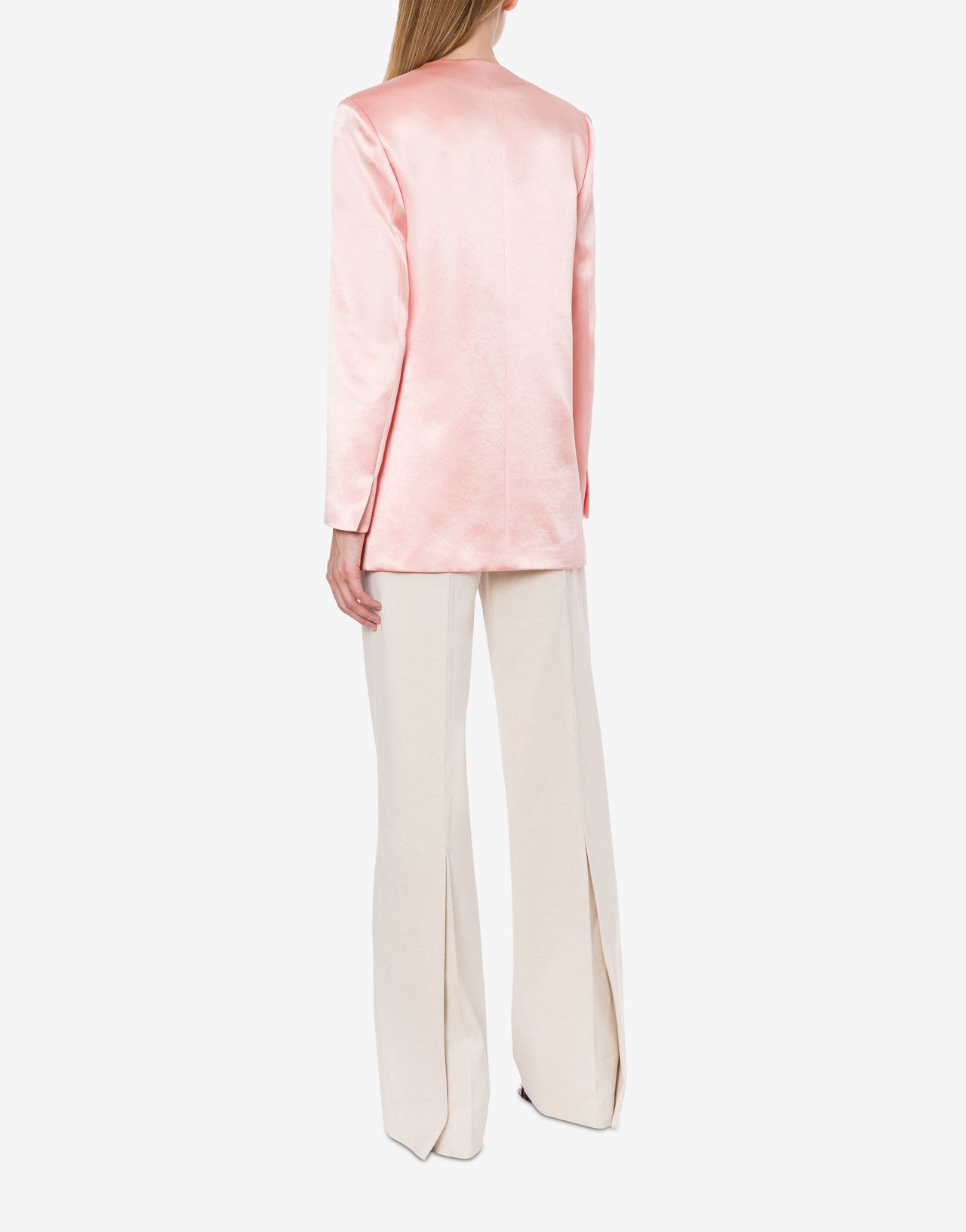 Double-breasted duchesse jacket, with an elegant allure. The lines are straight. The fit is relaxed. Ideal for party looks or special occasions. Three front pockets. Padded shoulder pad. Front closure with buttons. Lined