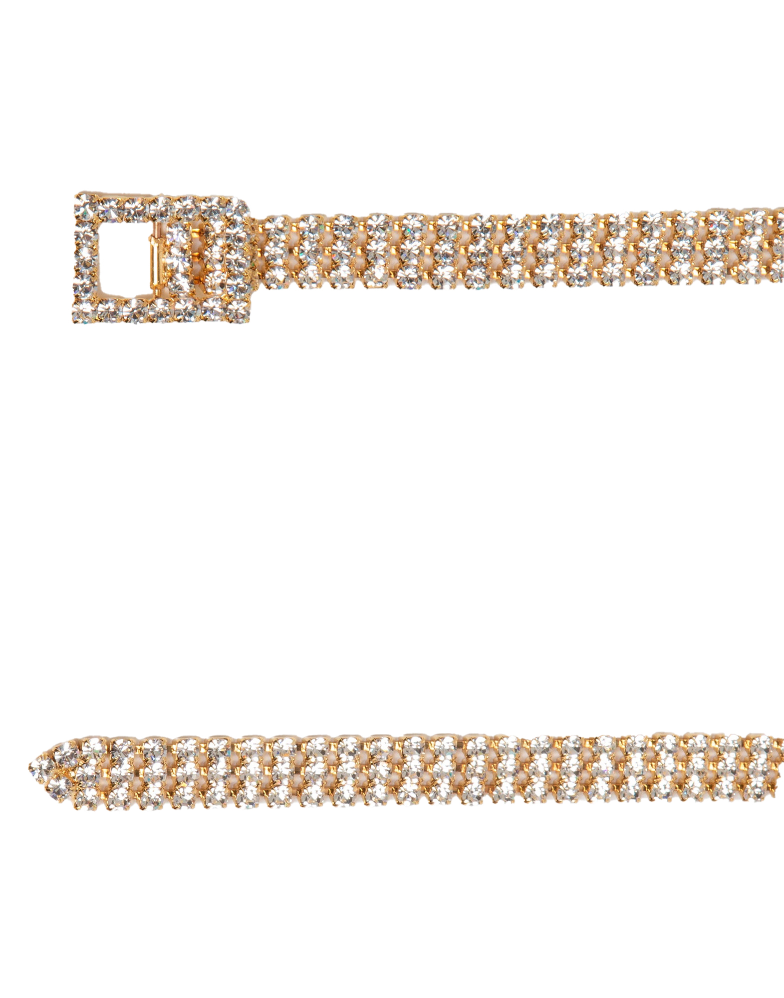 Silver plated brass belt with hand-welded semi-precious stones, adjustable buckle, clip closure.