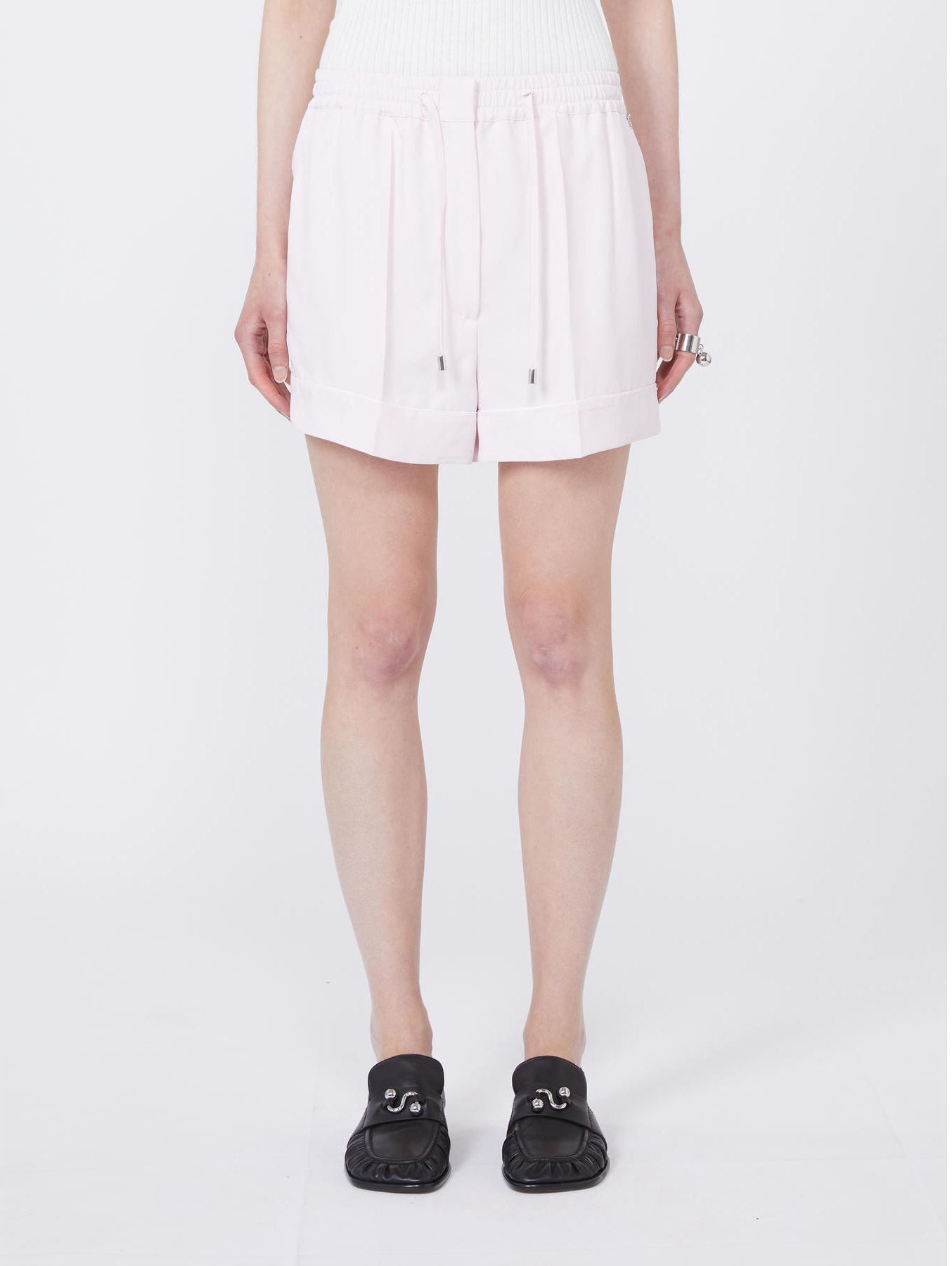 Jogger shorts made of washed viscose satin. Active details like the elastic insert and drawstring waist combine with tailored touches like contrasting piping and menswear-inspired pockets. Elastic waistband with drawstring waistband and metal ends. Contrasting piping on the pockets and hem. Side slash pockets and back welt pockets. Regular fit.