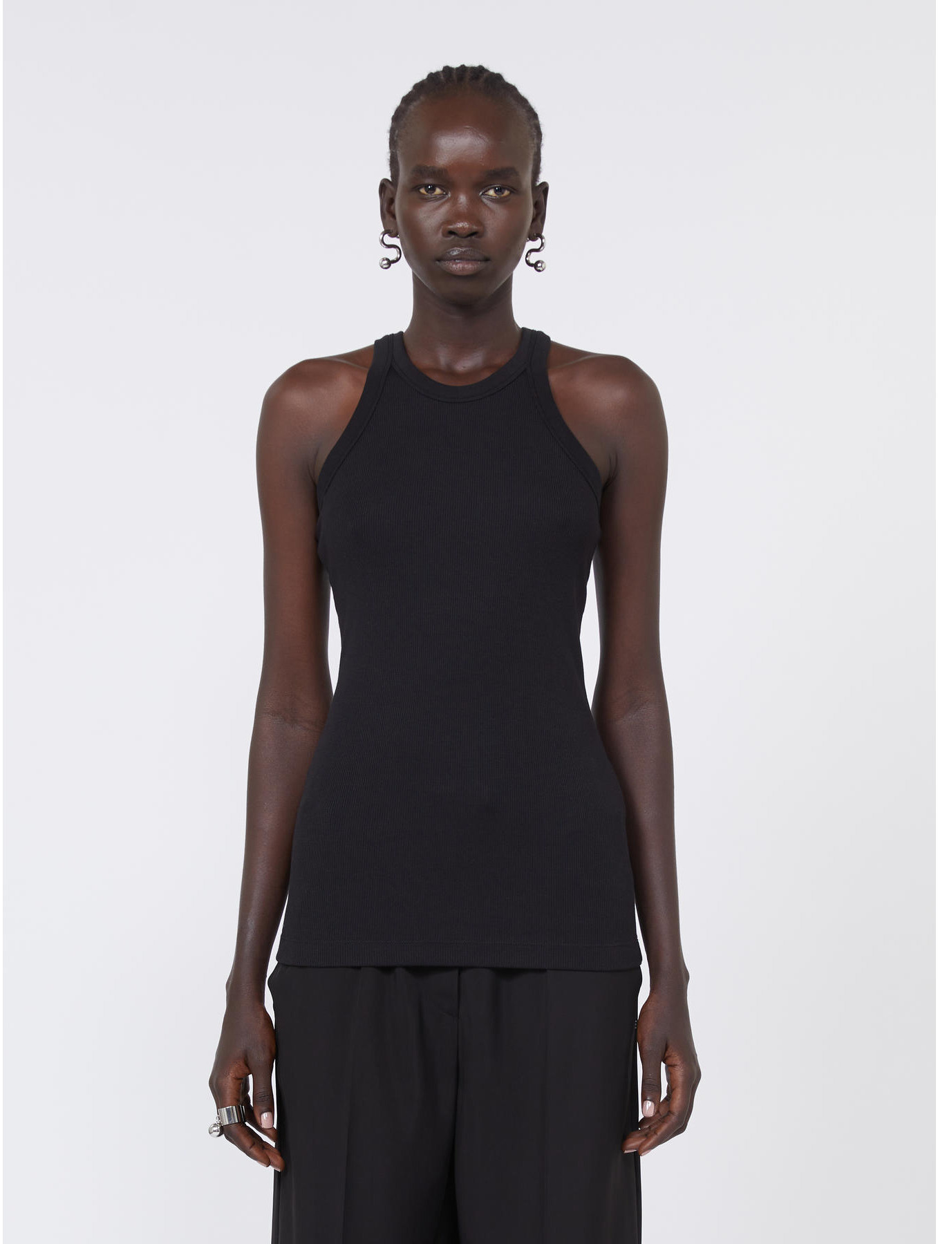Ribbed cotton and silk jersey tank top with a fitted fit and a halterneck. Ribbed edges. Ribbed cotton and silk tank top. Halterneck. Ribbed edges. Regular fit.