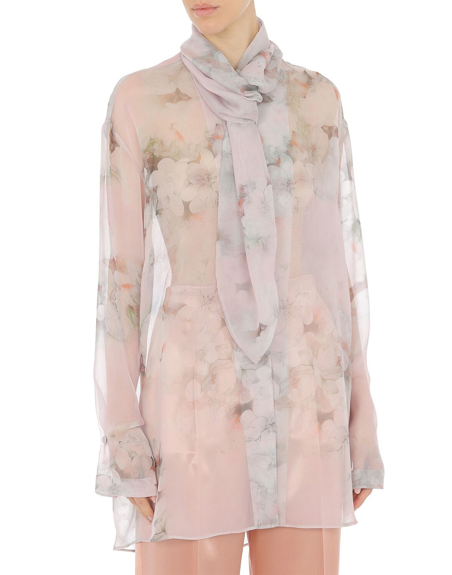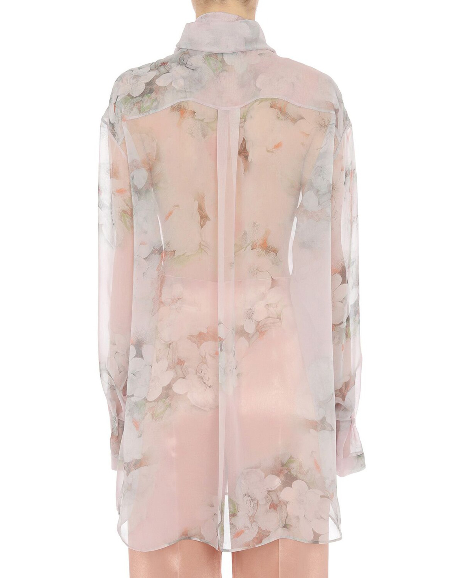 Il chiffon conferisce a questa camicia una qualità velata e ariosa, permettendo al motivo floreale in una palette di tonalità ghiaccio di tracciare dolcemente sulla pelle. Il tessuto extra sulla scollatura aggiunge movimento e può essere annodato elegantemente a cravatta o lasciato drappeggiare lungo la silhouette. Tessuto extra alla scollatura. Maniche lunghe. Concelebrazione con bottoni. Vestibilità regolare