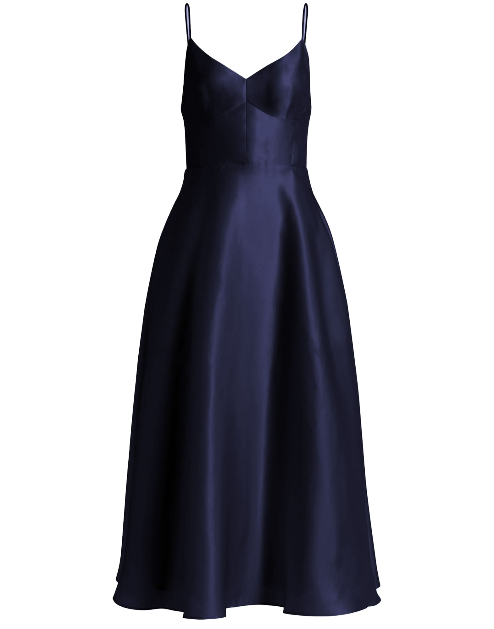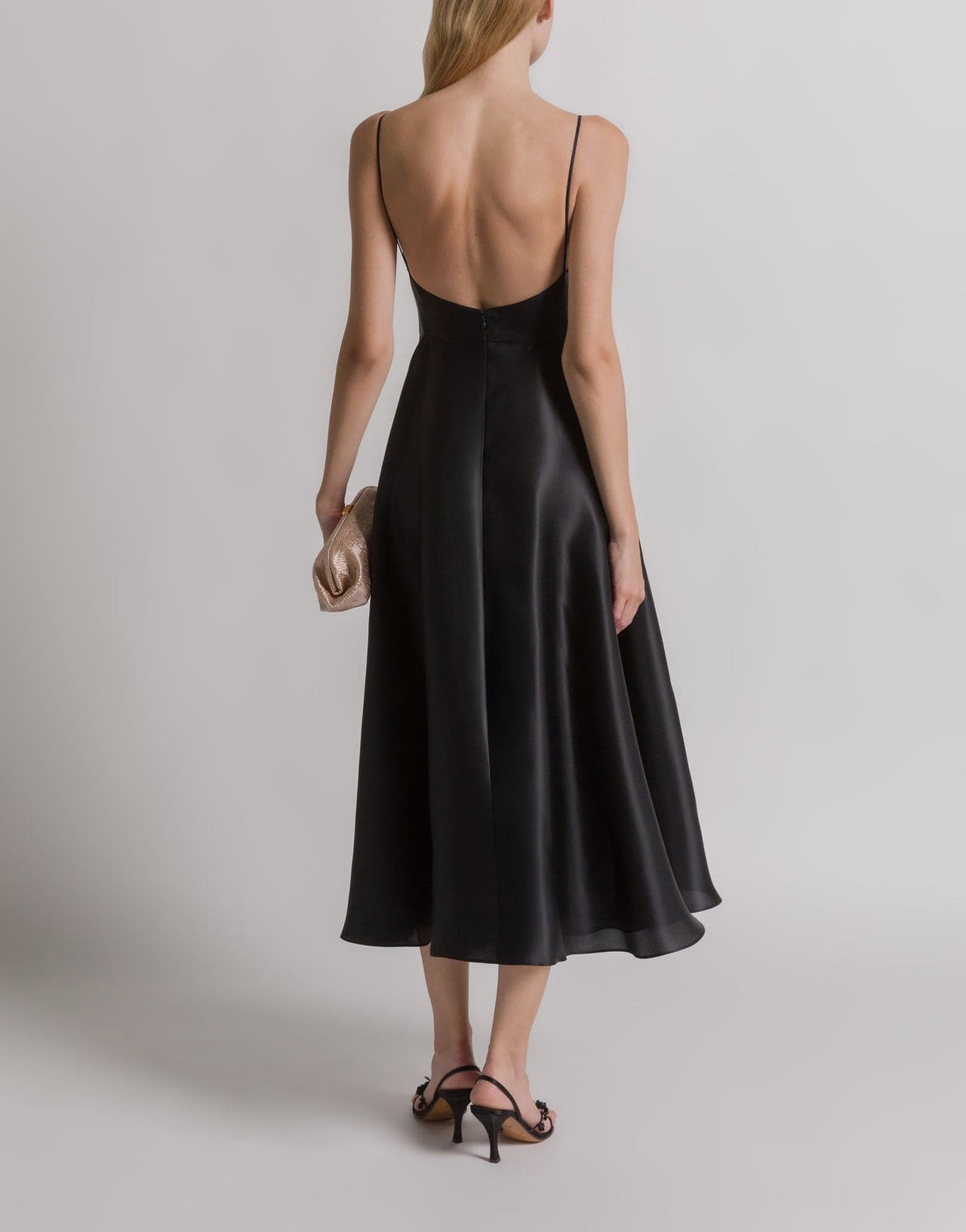 L'abito estivo per eccellenza, realizzato in organza di tripla seta liscia con spalline sottili, gonna ad A e schiena scoperta.