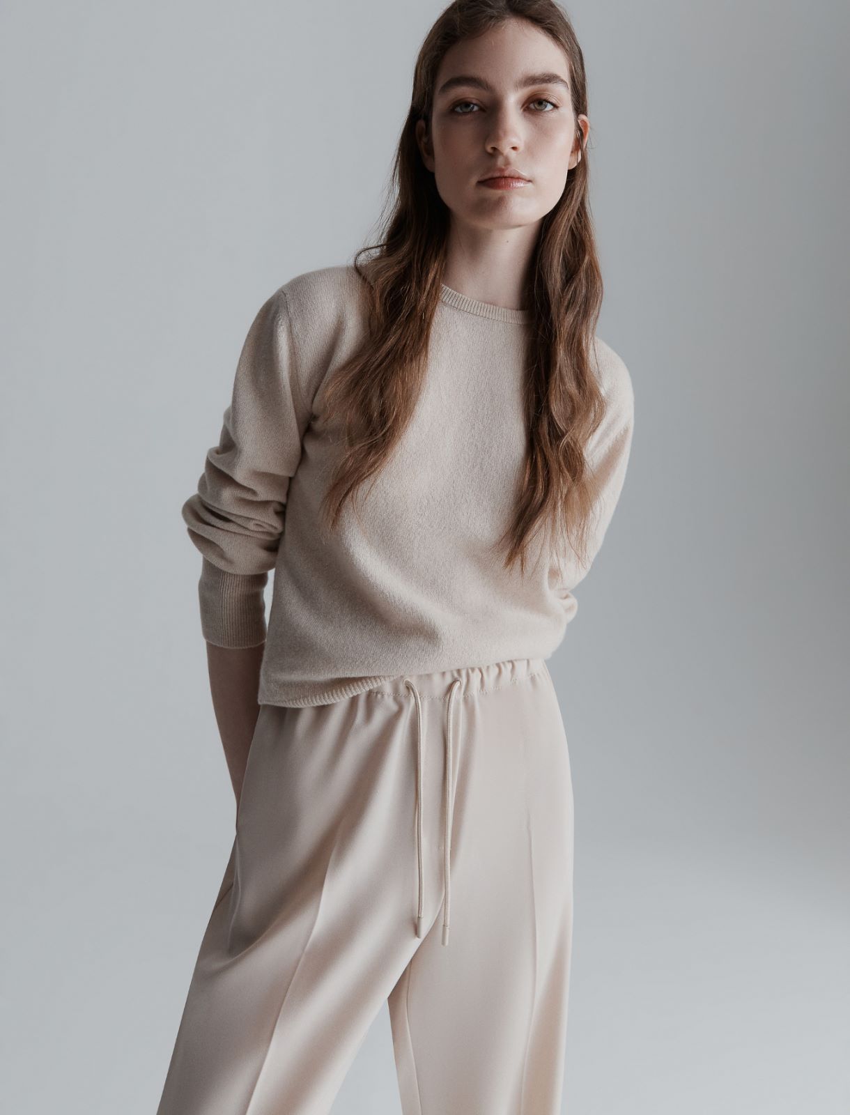 Morbido e caldo, il puro cashmere aggiunge quella nota lussuosa che eleva ogni look. In questa maglia viene sviluppato su linee pulite, con piccoli spacchi laterali e dettagli di calature che aggiungono preziosità.