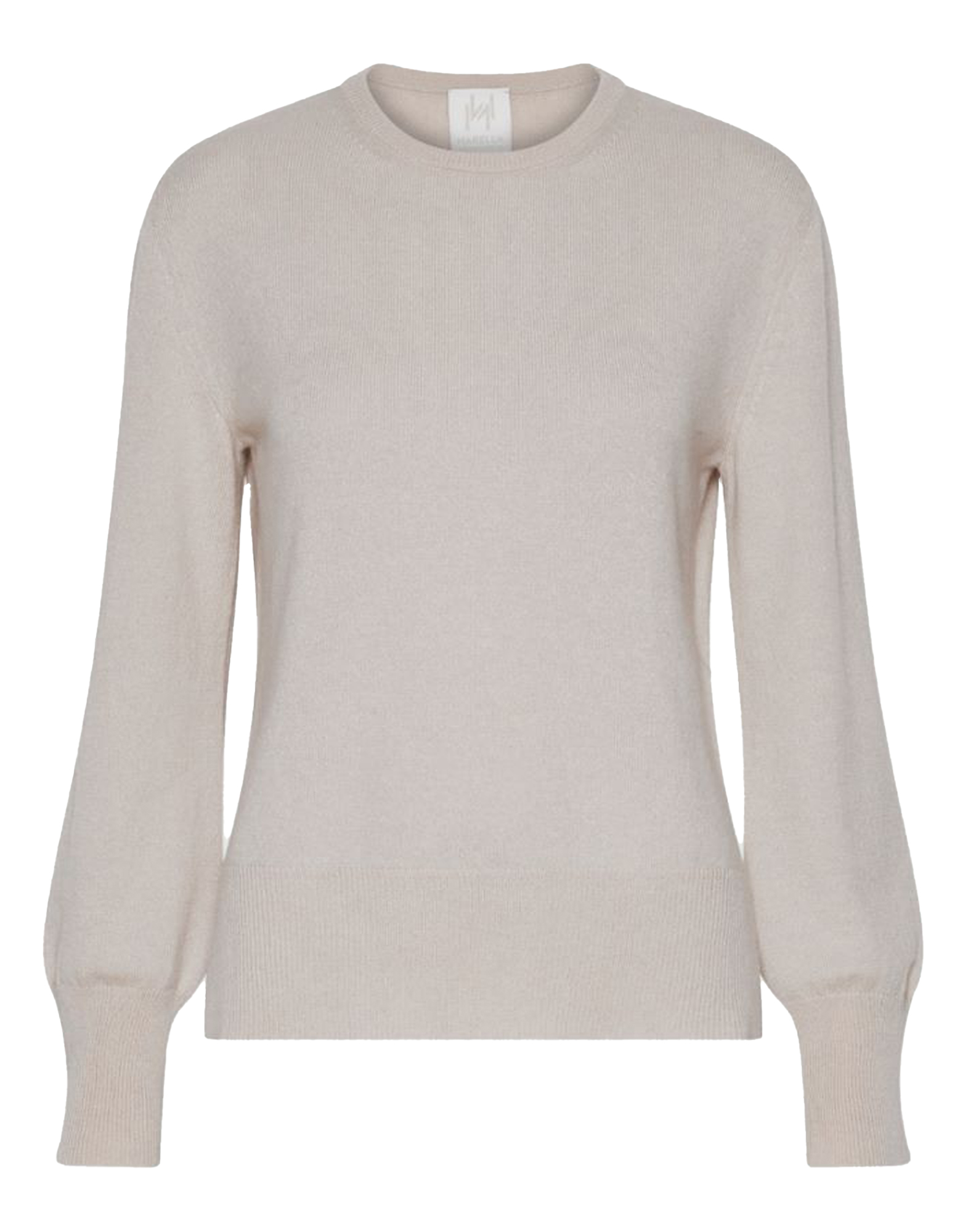 Maglia in filato di puro cashmere. Fit dritto. Scollo a giro. Spacchi laterali. Dettaglio di calature e costa singola sul retro. Scollo e fondi lavorati a coste