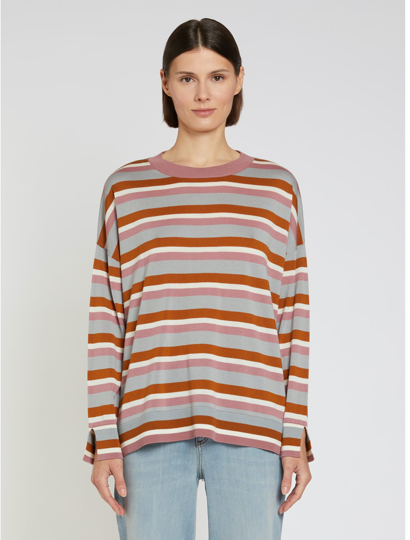 Maglia in lyocell. Fit ampio. Scollo stondato. Maniche lunghe con spalla scesa. Spacchi sui polsini. Fondo a coste