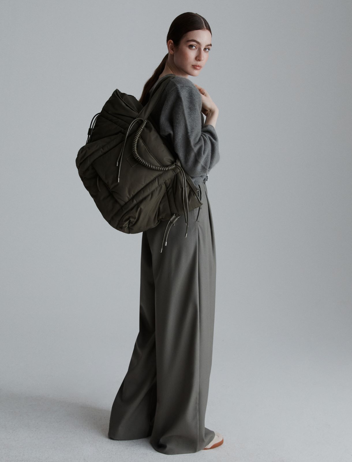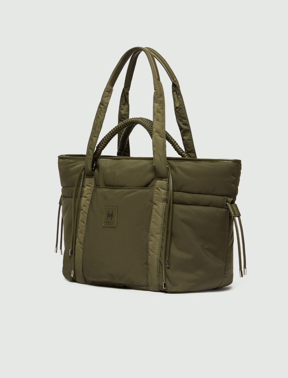Perfetta per un viaggio o per un fine settimana fuori porta, questa borsa in tessuto tecnico ha una leggera imbottitura che richiama i modelli più trendy. Con coulisse per un'ampiezza modulabile. Borsa in tessuto tecnico imbottito con tasca posteriore per trolley. Chiusura con zip e coulisse laterali. Tasca interna con zip e doppi manici per una portata a spalla o a mano. Logo M verniciato on tone ed etichetta applicata sul retro. Dimensioni: 42 x 20 x 34 cm