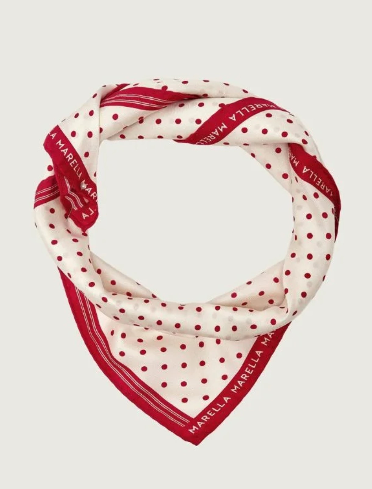 Pretty pois. Nuovo foulard in pura seta decorato con la stampa più giocosa del mondo fashion. Bordati con logo in un mix unico di femminilità e leggerezza. Foulard piccolo in twill di pura seta con stampa a pois. Orlo rifinito a mano. Consegnato con confezione personalizzata. Dimensione: 58 x 58 cm.