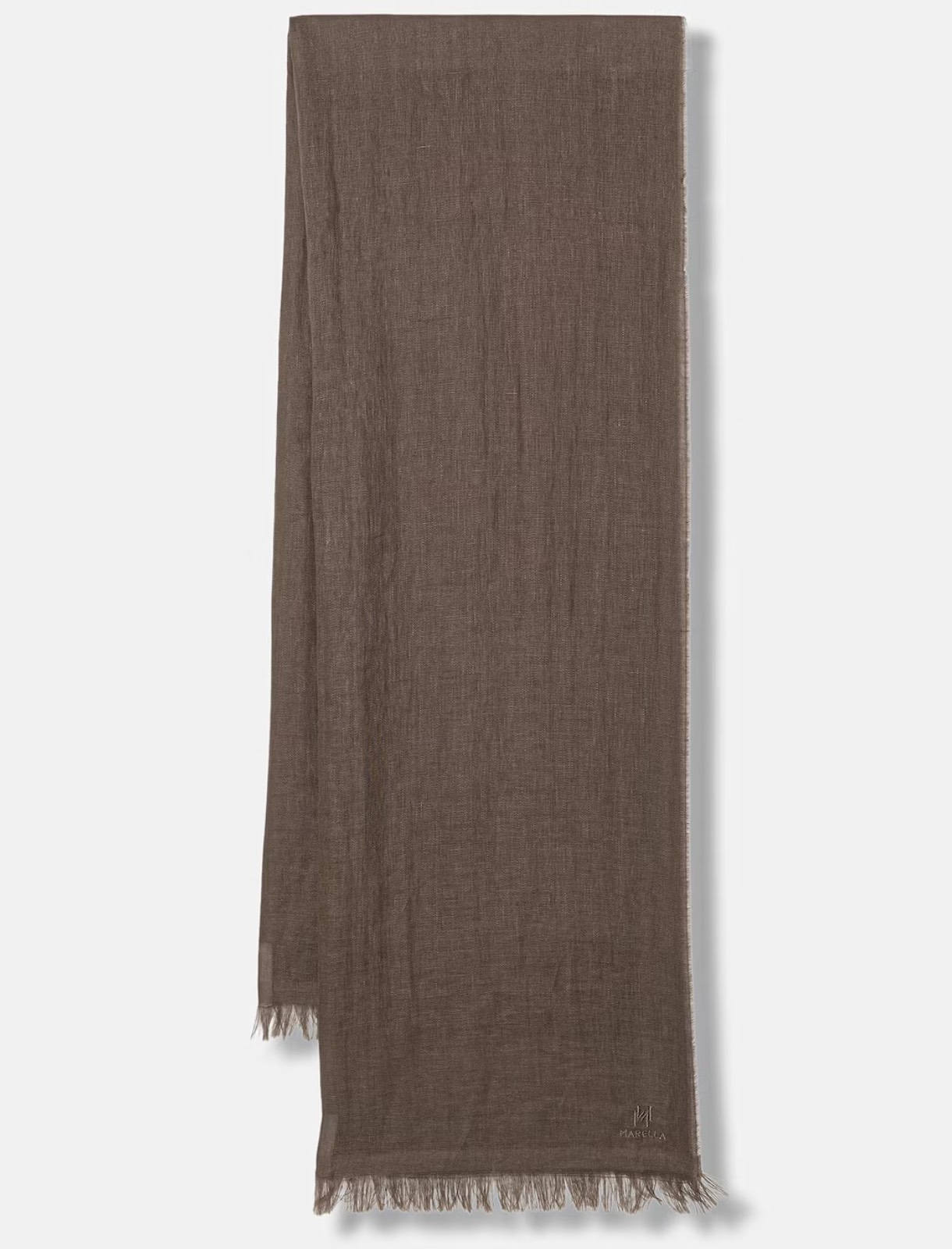 Pashmina in puro lino. Logo Marella Monochrome. Frange sui lati corti. Dimensioni: 70 x 205 cm