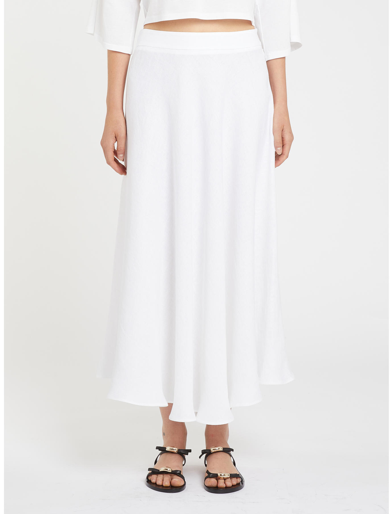 Iconica, imprescindibile: la gonna estiva per eccellenza è questa in puro lino, con linea svasata al fondo e un'attitudine metropolitana. Completala con sandali, top e blazer, con una molteplicità di look possibili.