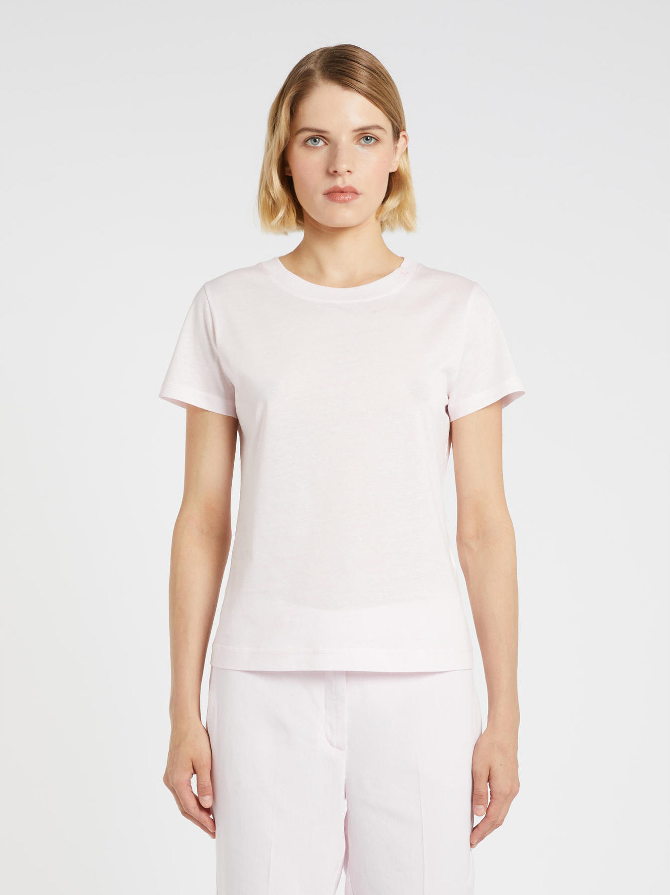 T-shirt in jersey di puro cotone. Fit dritto. Scollo stondato bordato con costine. Maniche corte. Logo Monochrome sul lato sinistro dello scollo. Marella monochrome.
