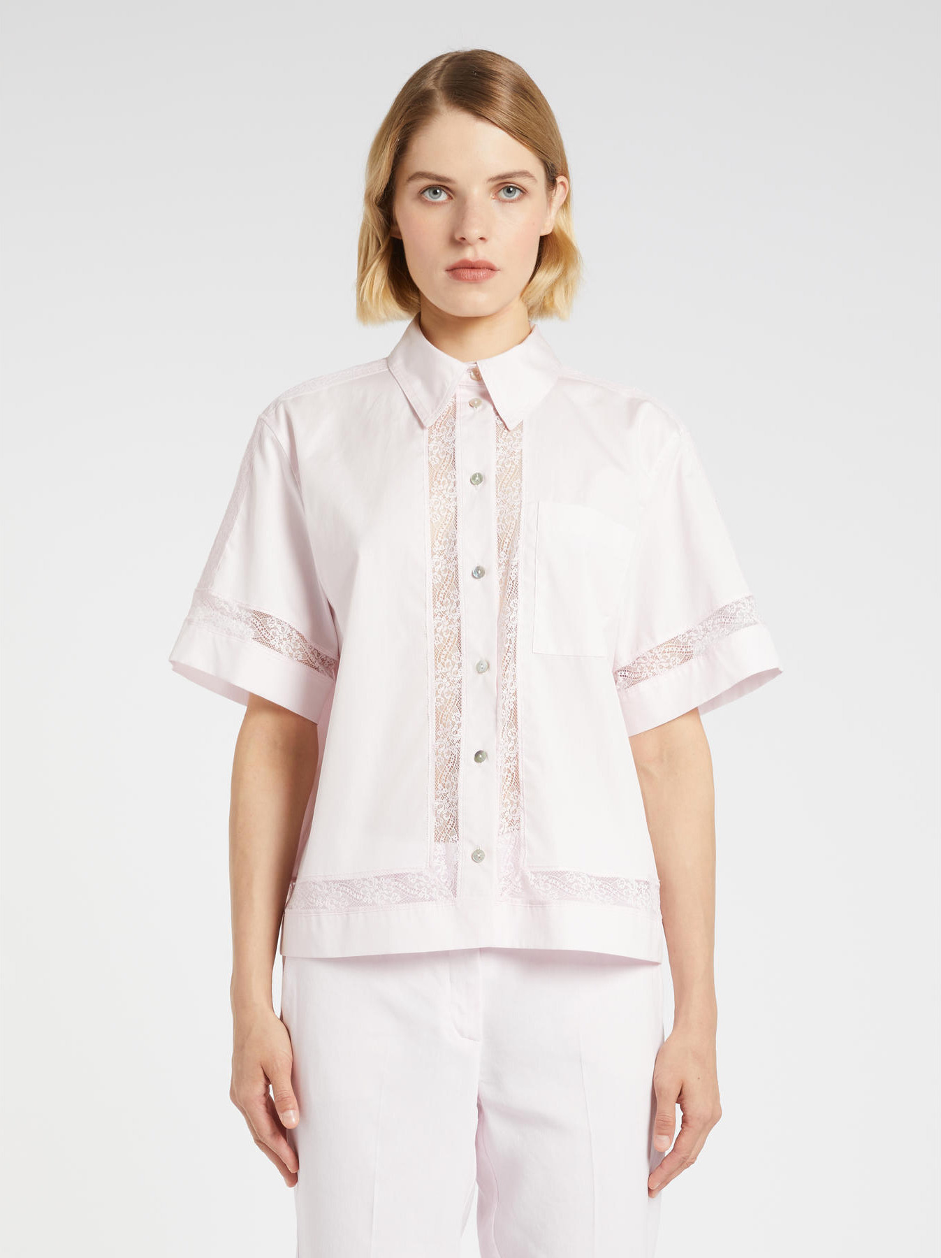Romanticismo contemporaneo: nuova camicia in popeline leggero, ritmata dagli inserti in pizzo che regalano trasparenza e una nota sensuale. Da abbinare con i pants coordinati per un'estate all'insegna dell'eleganza. Camicia in popeline leggero di puro cotone. Fit regolare. Collo a camicia con abbottonatura a vista. Inserti in pizzo su spalla, manica, busto e fondo capo. Logo Monochrome ricamato nel retro collo