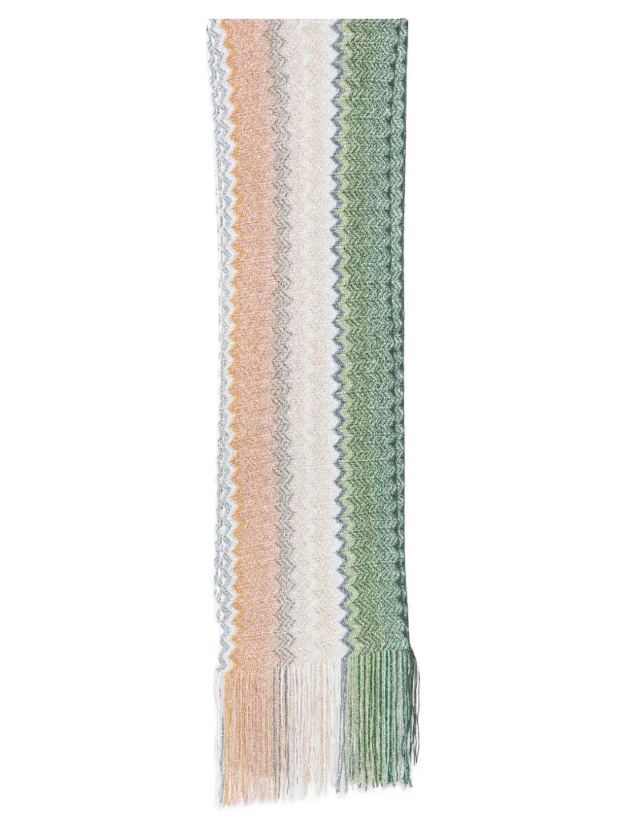 Sciarpa zigzag verde e multicolore, lurex.