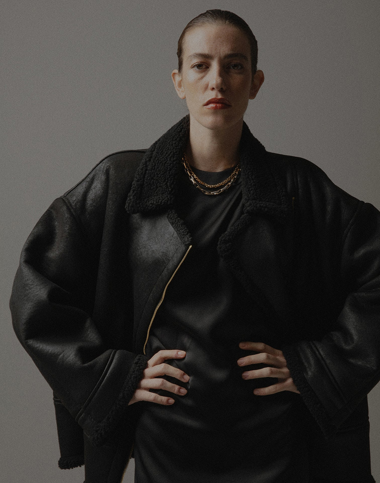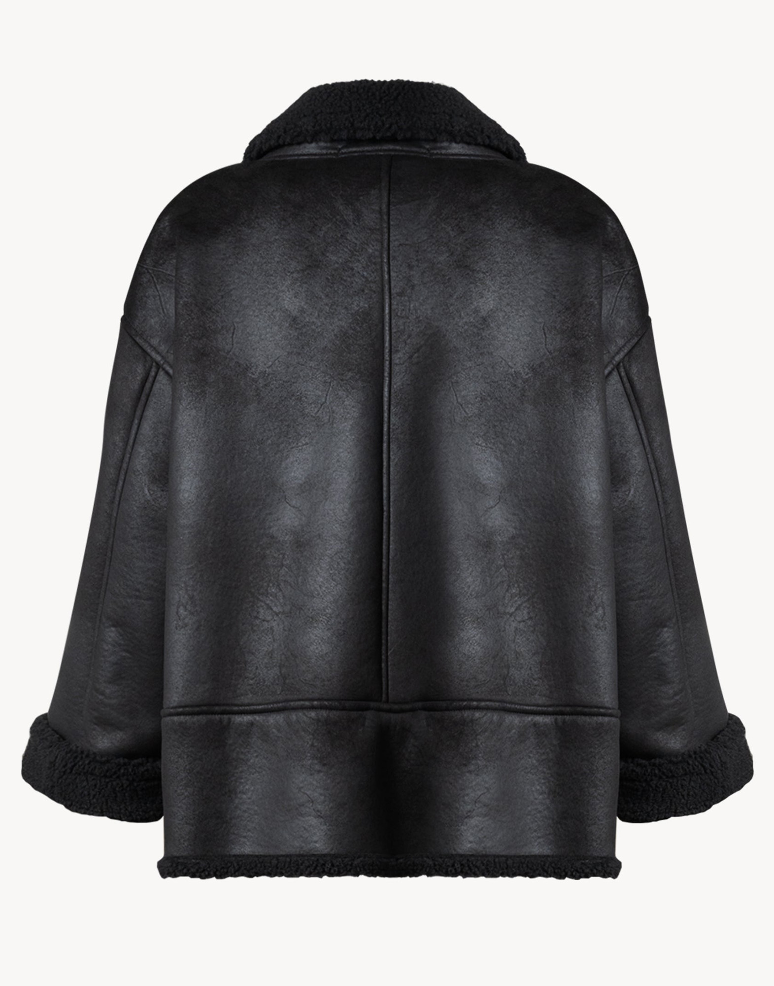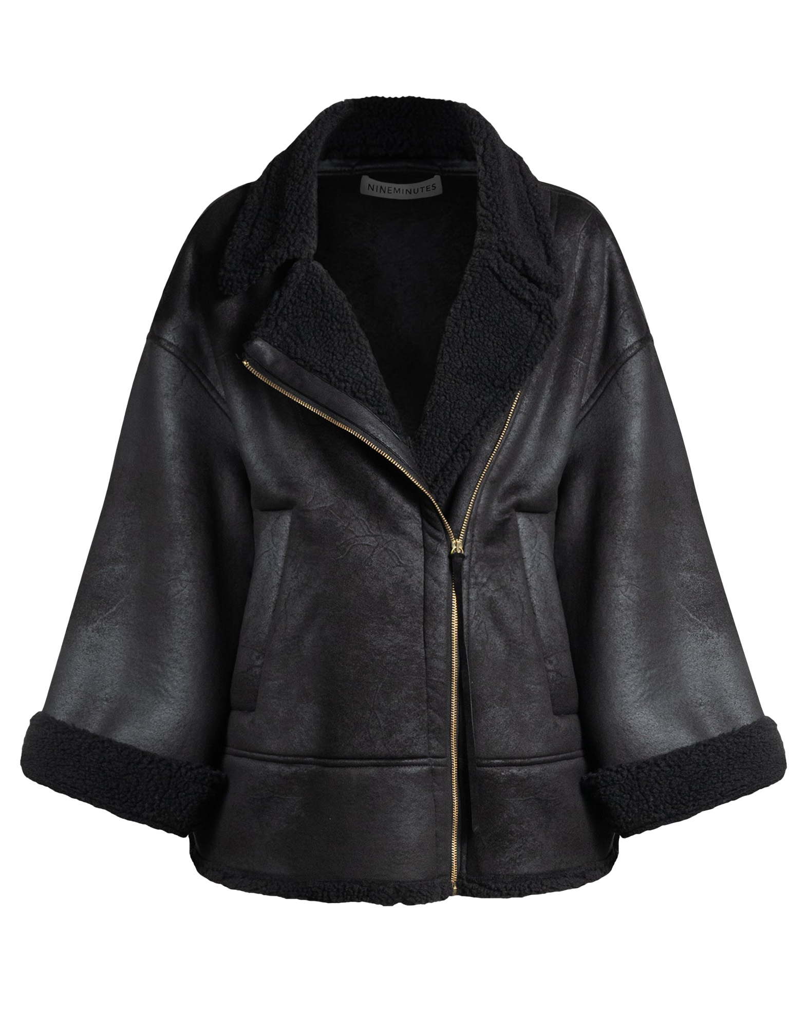 Giaccone modello ecomontone chiodo in pelo ecologico, effetto montone, chiusura con zip, due tasche laterali, fodera e polsini sherling, modello dritto e oversize. Made in Italy