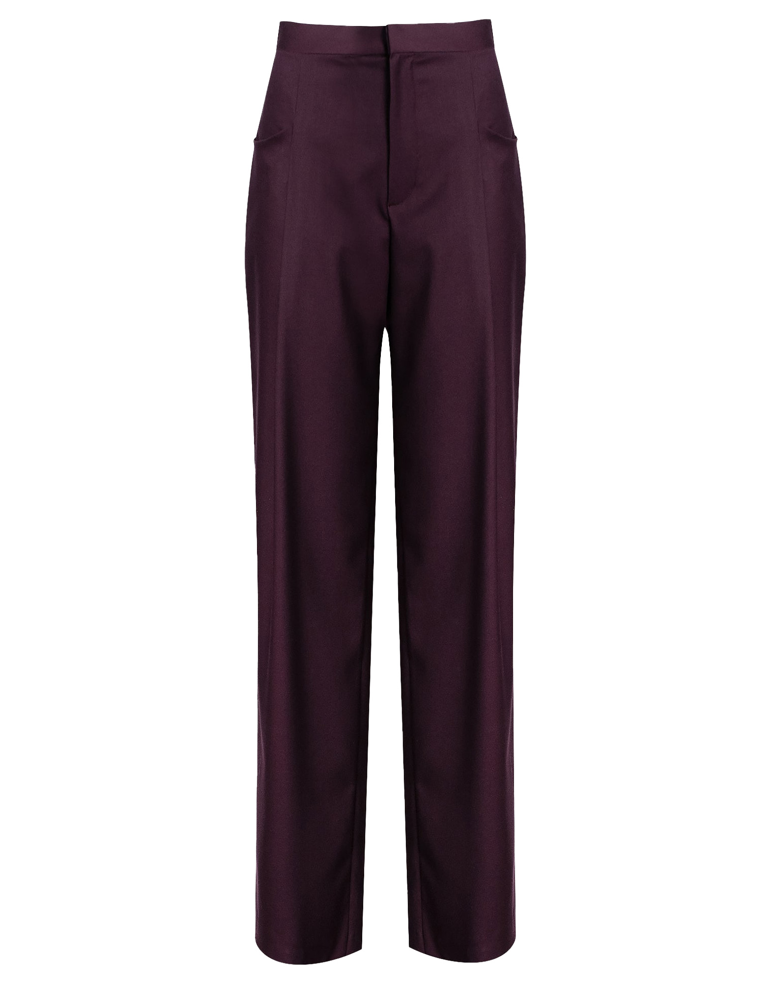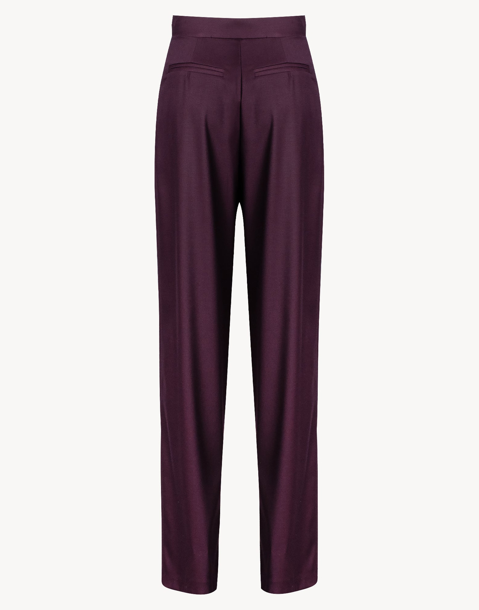 Pantalone vita alta a palazzo, gamba larga, pence al centro, vita regolare. Tasche.