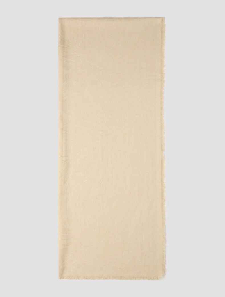 Lavorata in tessitura jacquard a ramages floreali monocromatici, questa stola è arricchita da un filo lamé per catturare con delicatezza i raggi del sole e le luci della sera.