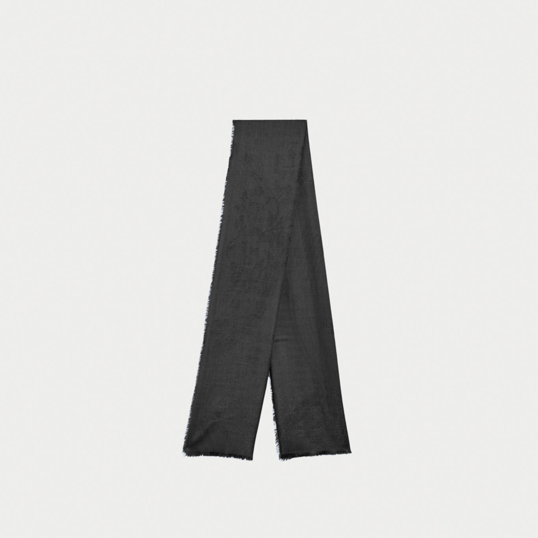 Lavorata in tessitura jacquard a ramages floreali monocromatici, questa stola è arricchita da un filo lamé per catturare con delicatezza i raggi del sole e le luci della sera.