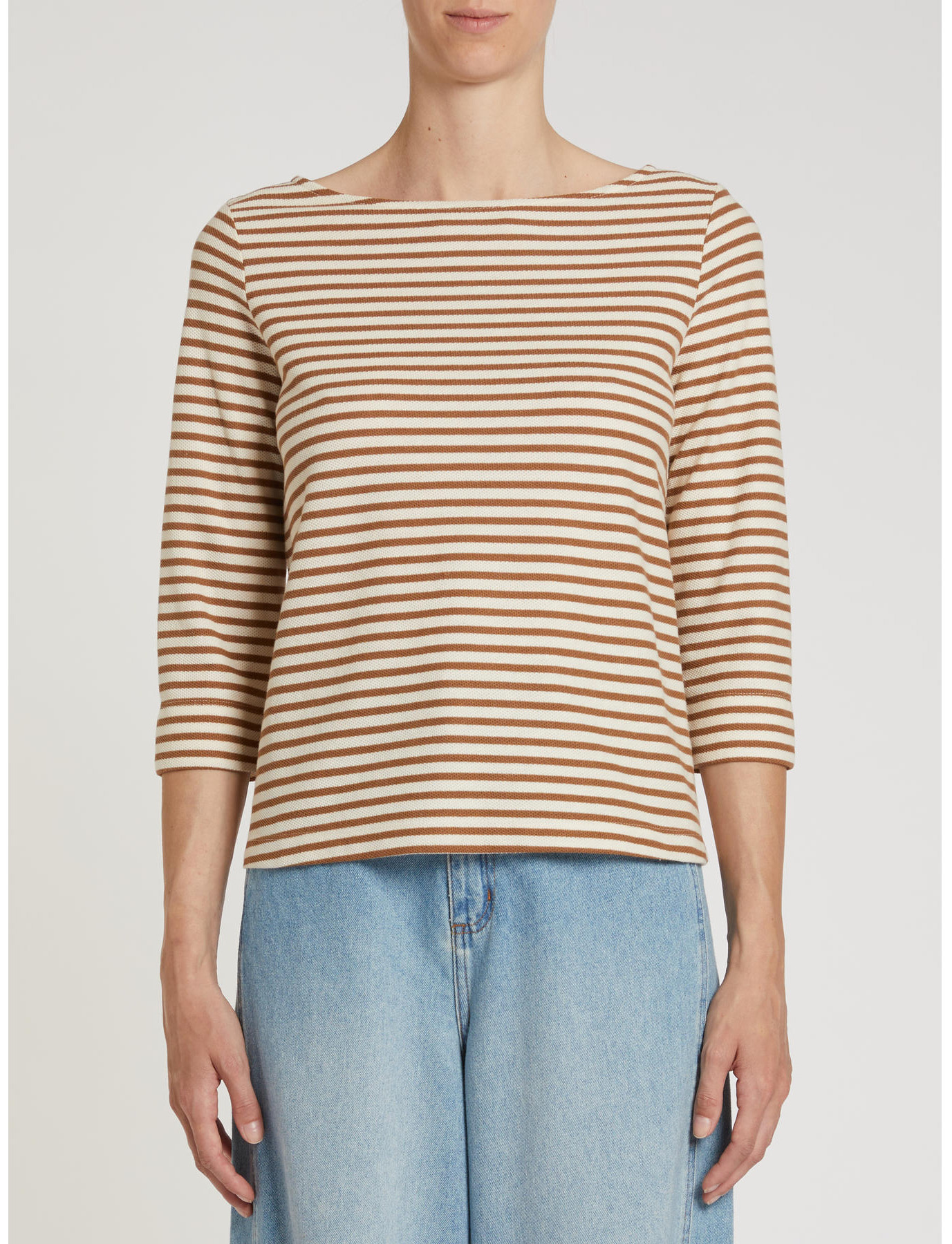 Jersey doppio in blend di cotone con lavorazione piqué. Linee diritte e morbide. Collo in maglia a costine. Maniche corte. Spacchi laterali al fondo