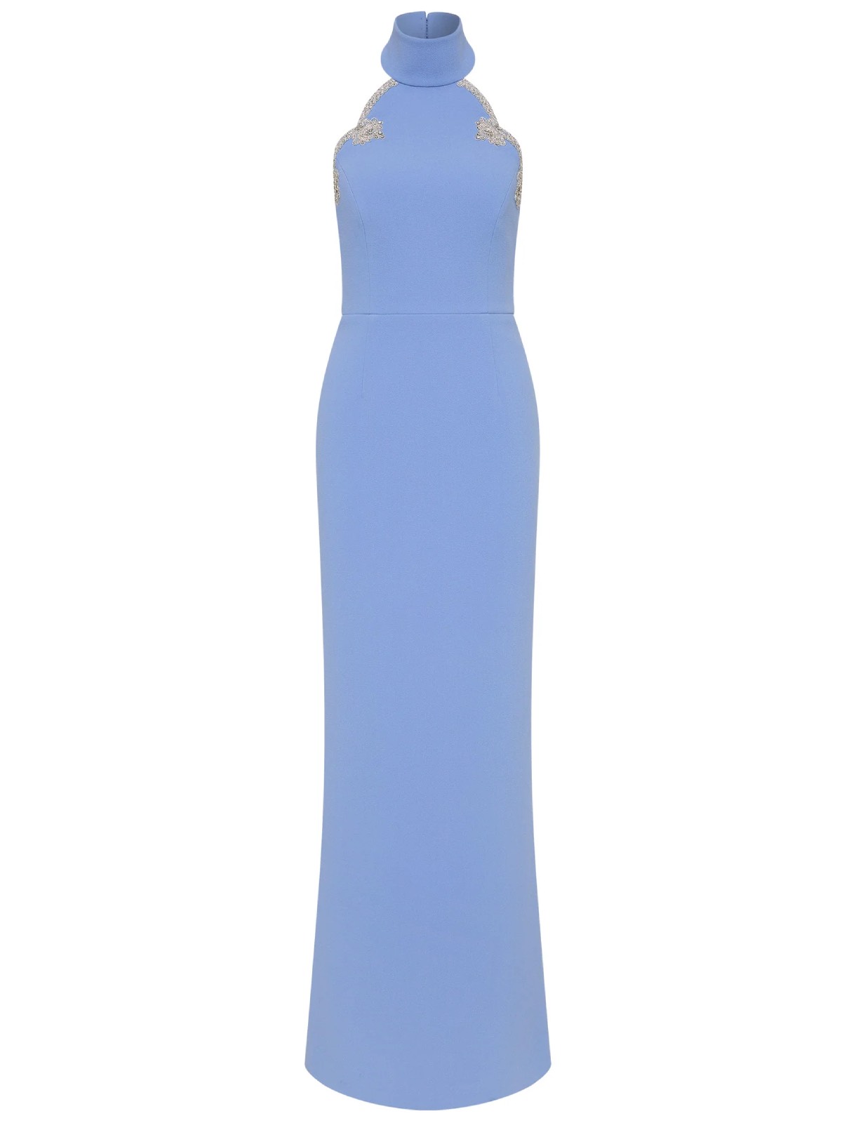 L'abito con scollo all'americana Harlynn è accattivante in un azzurro polvere, impreziosito da dettagli di strass smerlati. Caratterizzato da uno scollo all'americana, il corpetto aderente è stretto in vita per accentuare la silhouette femminile. La gonna lunga a colonna disegna una silhouette elegante, con uno spacco posteriore per facilitare i movimenti. Completamente foderato e rifinito con una chiusura a zip invisibile sul retro, questo abito è una scelta sofisticata per la tua prossima occasione speciale.