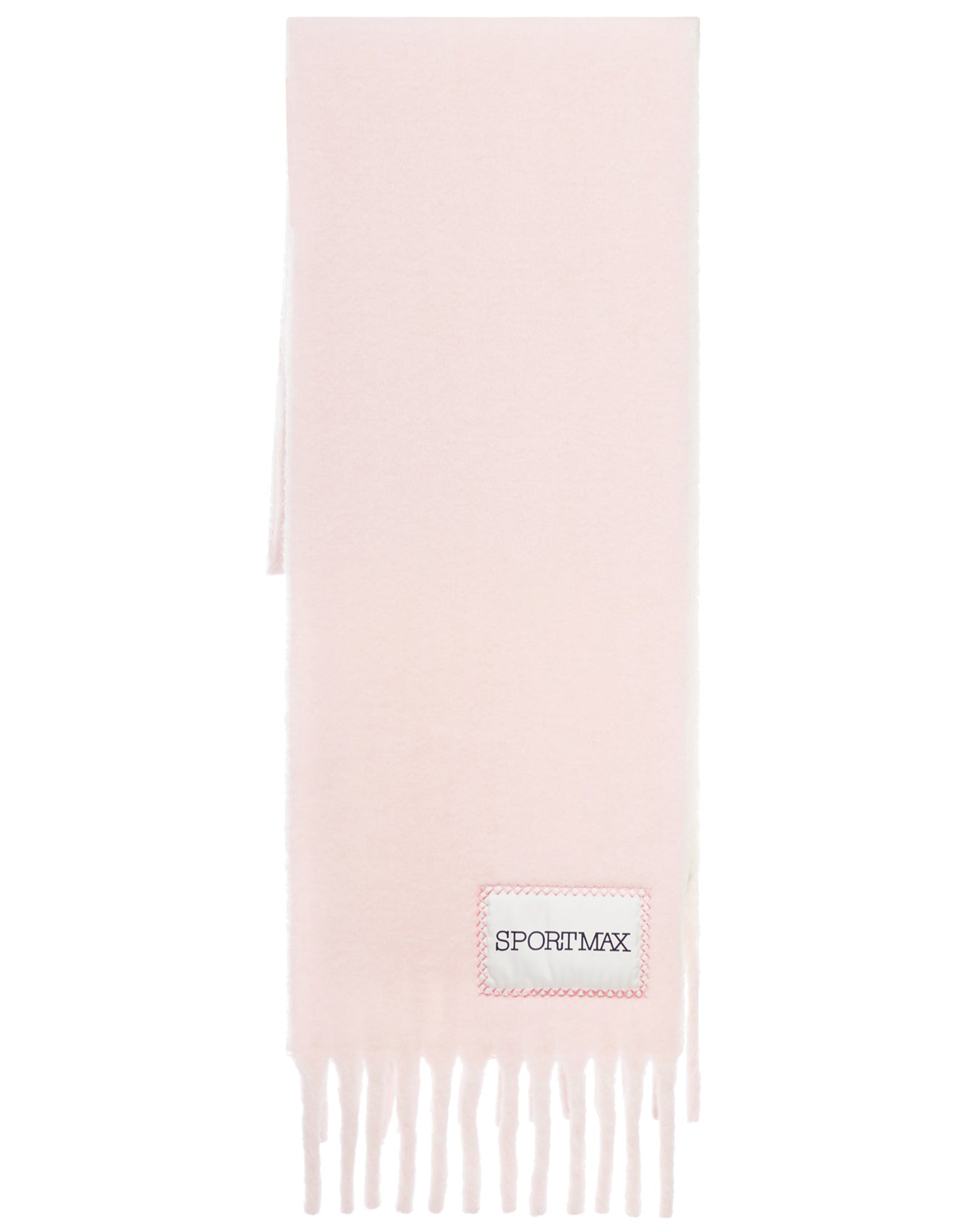 Sciarpa in double, misto lana di alpaca bicolore fronte e retro, frange lunghe 12 cm e maxi etichetta con logo Sportmax . Dimensioni: 28 x 245 cm